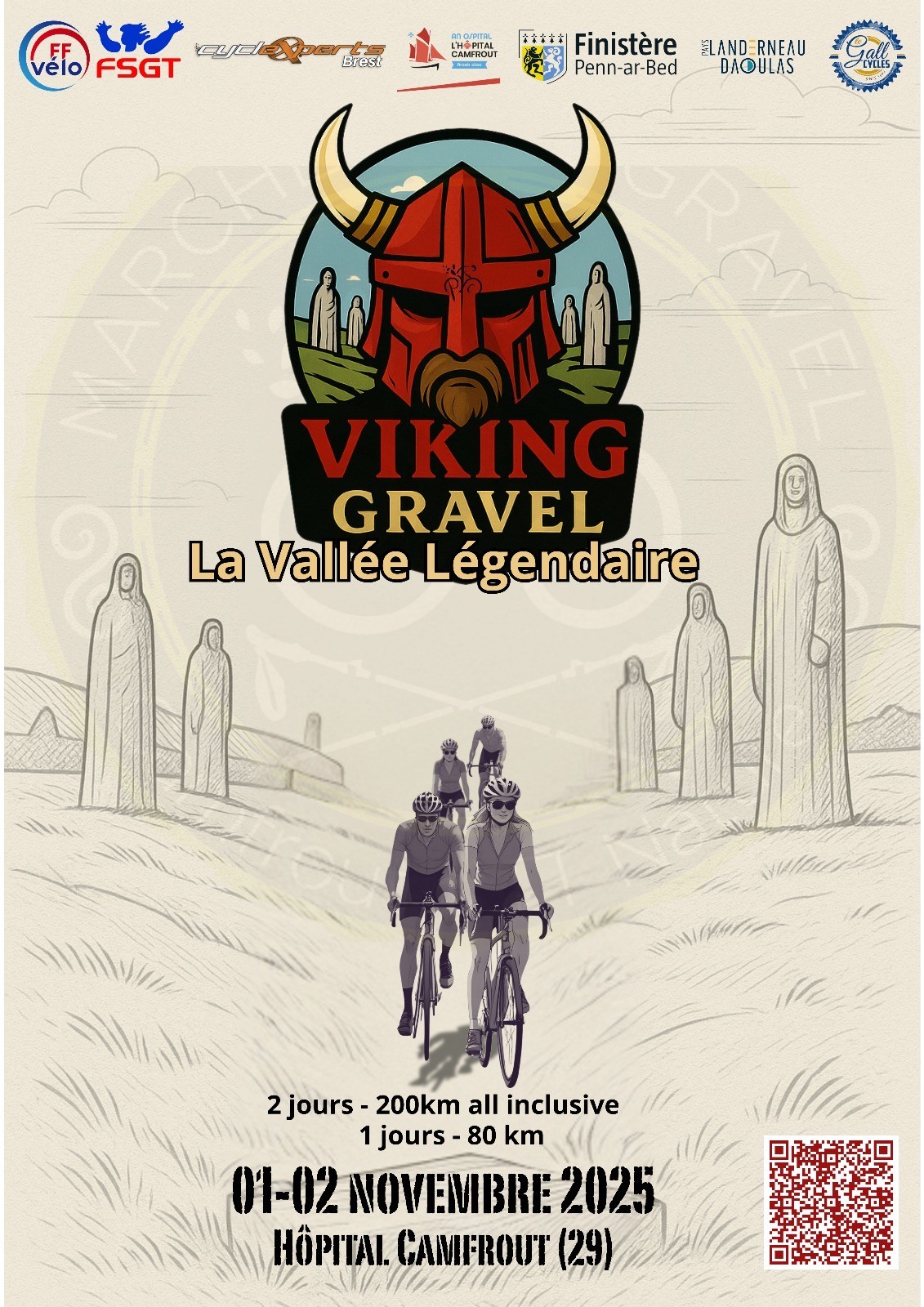 Les participants prendront le départ le samedi 01 novembre pour la Gravel au Gymnase, place Général De Gaulle à l’Hôpital Camfrout à 7h00 pour le circuit de 126 kilomètres, L’arrivée au gite Ti Menez Are à Brasparts est prévue entre 16h00 et 18h00.