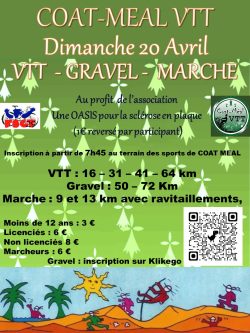 Invitation aux Randos VTT de Gouesnou le 11 Novembre 2025, inscriptions dès 7h30 Quatre parcours : 23 km, 37 km, 40 km, 47 km